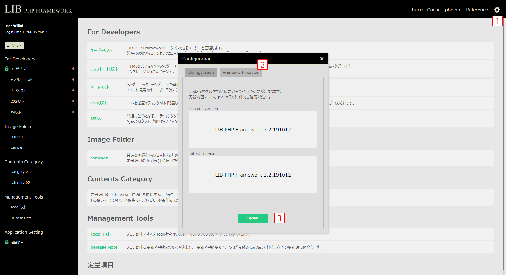 インストールバージョンと最新バージョンを確認し、必要に応じて更新してください。