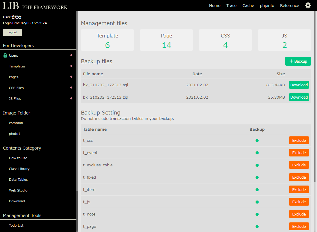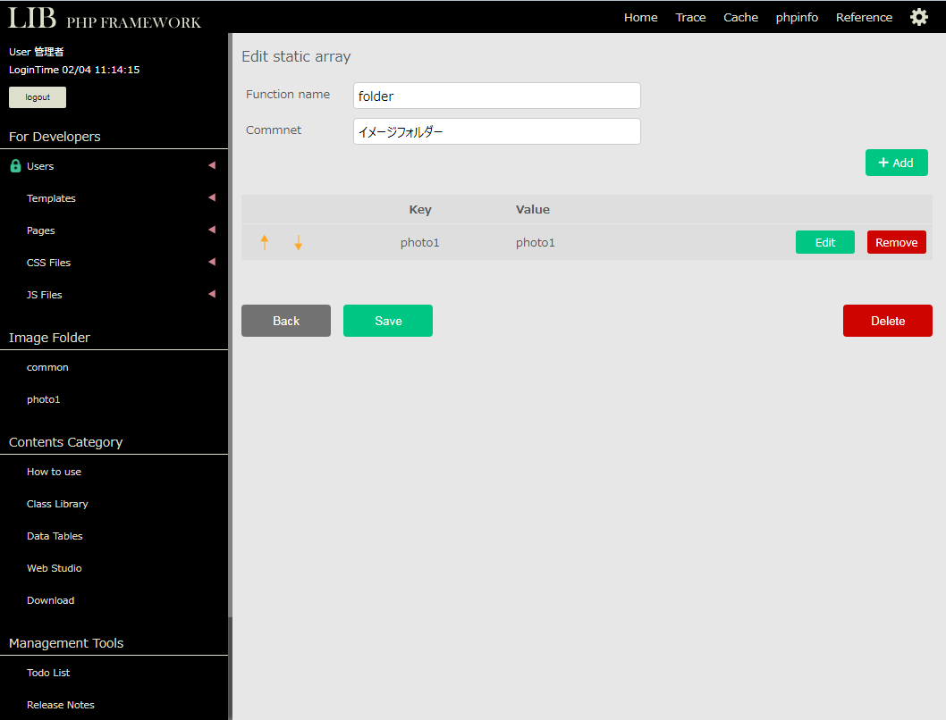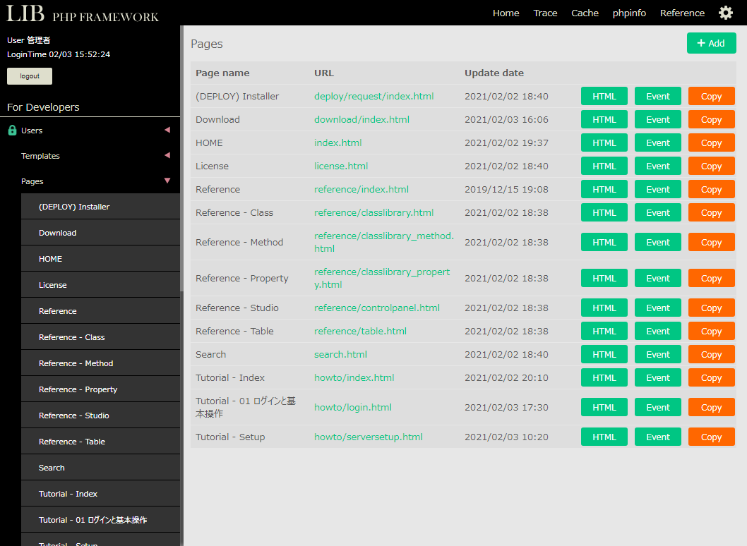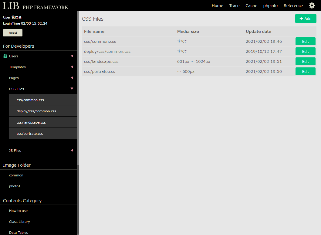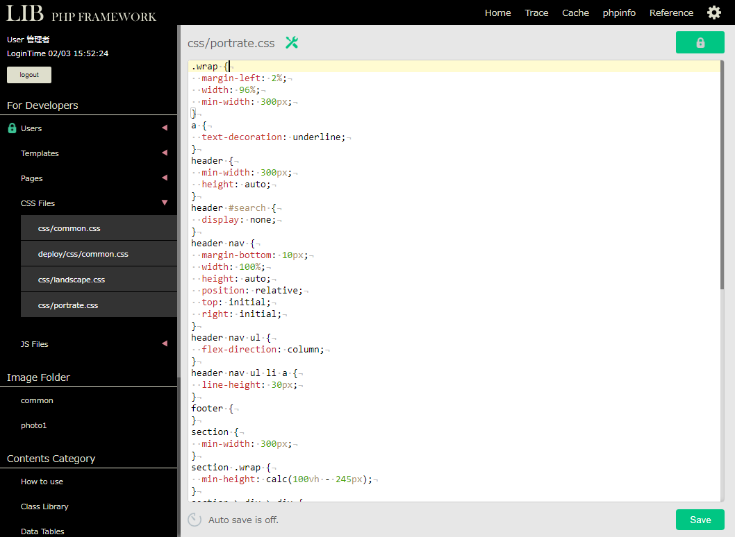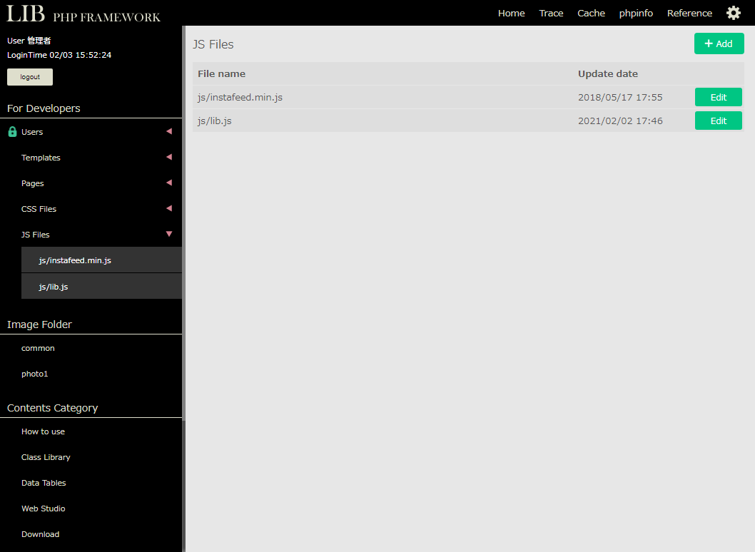 LIB PHP Frameworkでは、サーバーにインストールされたWeb Studio上でHTML、CSS、JavascriptおよびPHPコードを編集します。