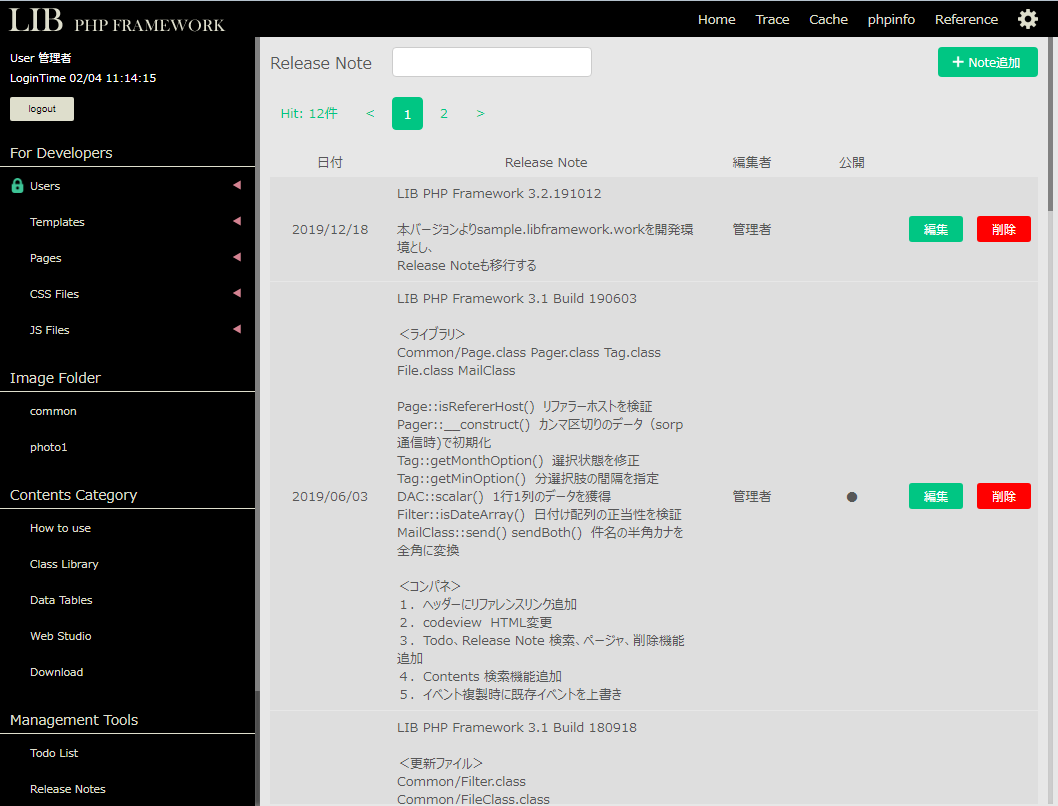 Web Studioでの編集内容は、必ずリリースノートに記述し、ユーザー間で更新状況を共有します。