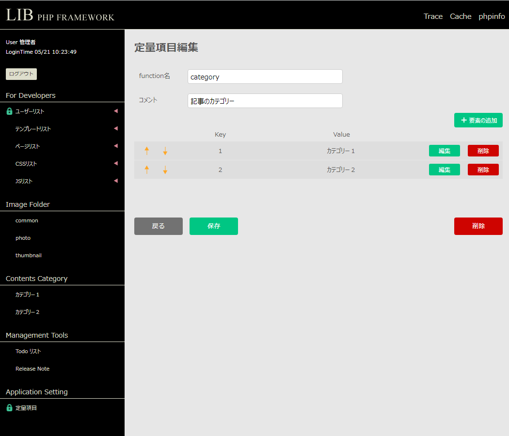 新規に Contents Category に要素(カテゴリー)を追加したい場合は、