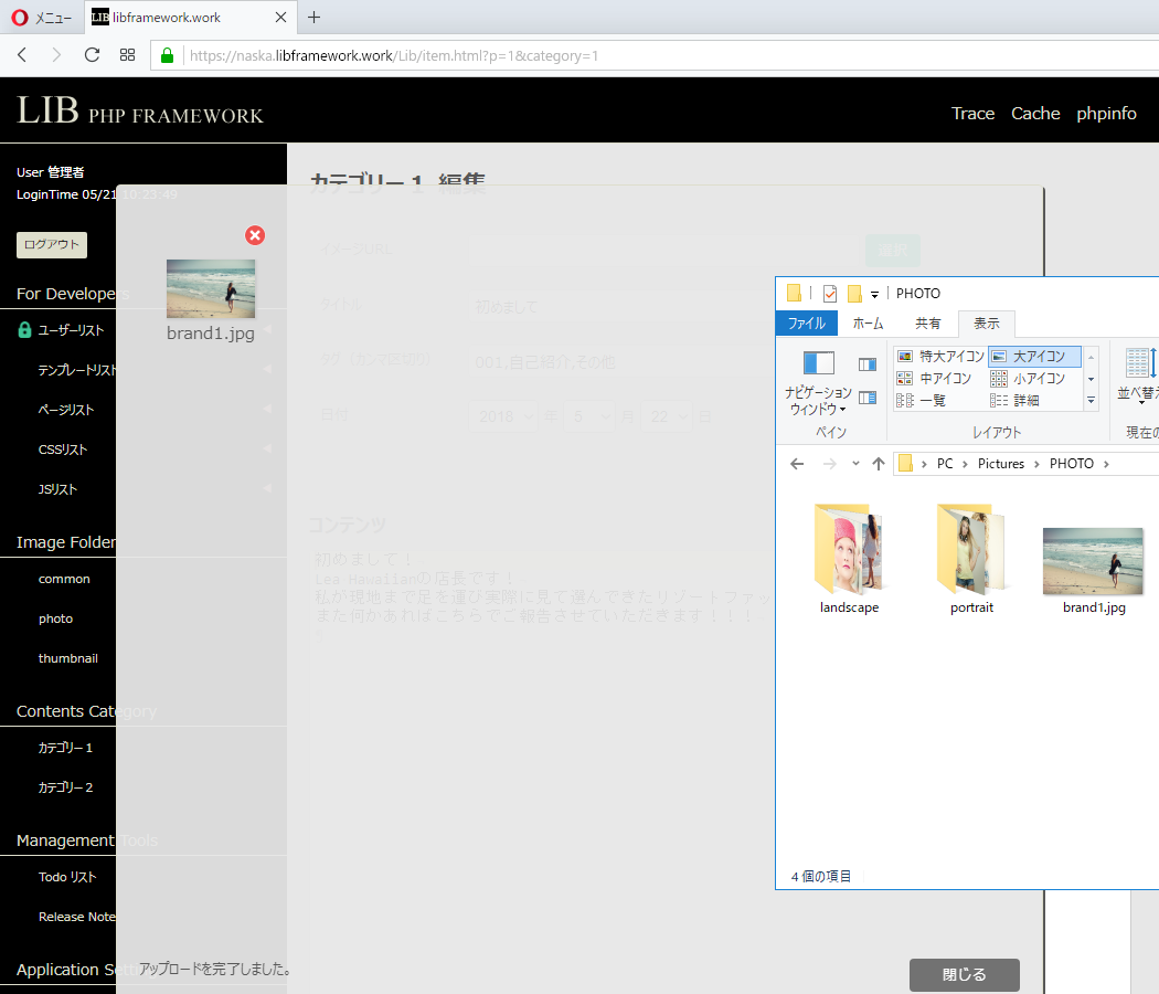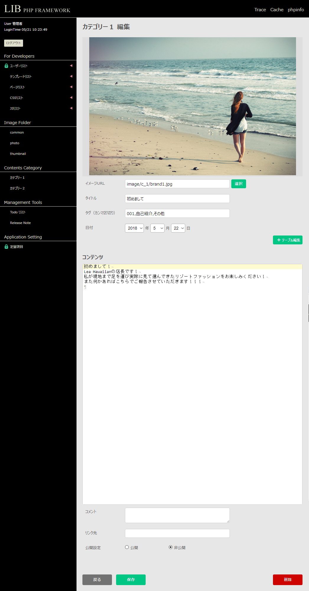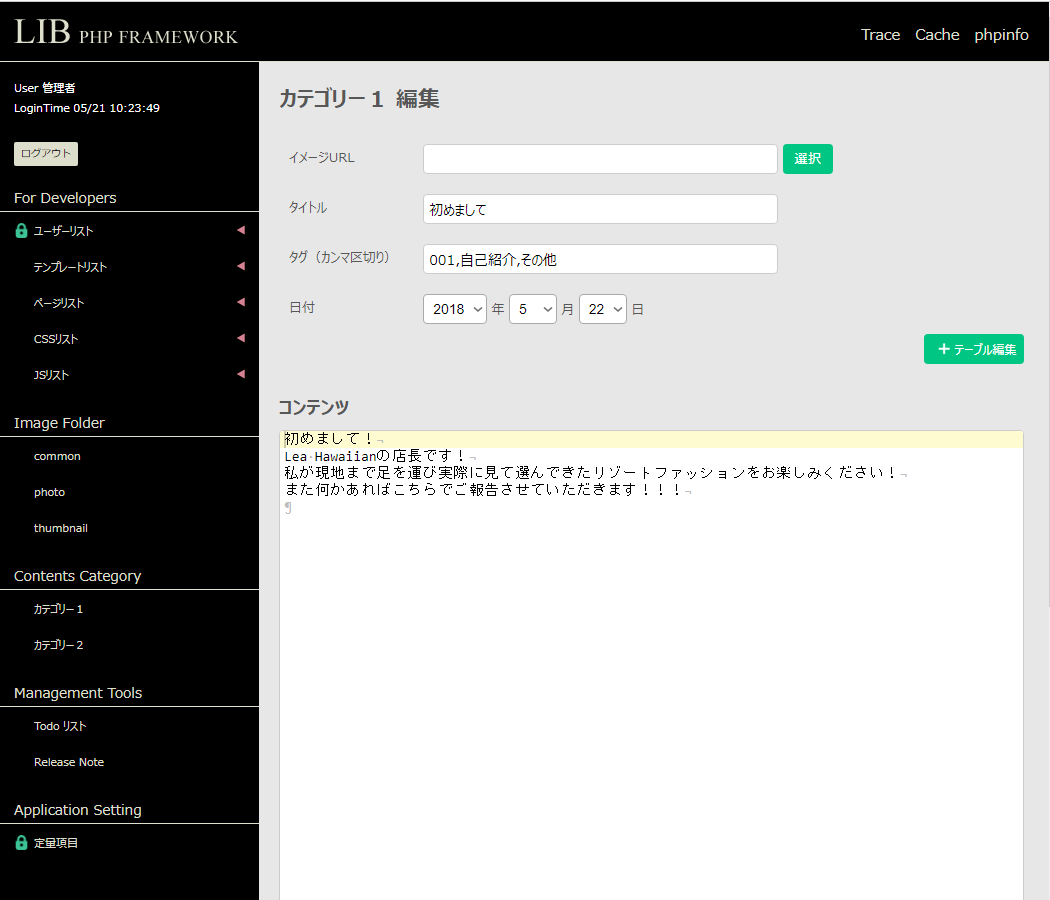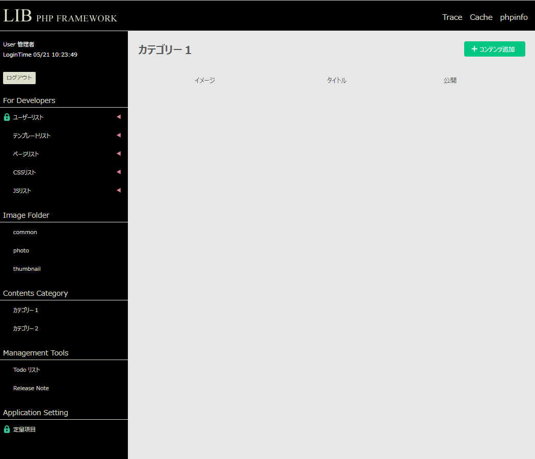 メニューの Contents Category から新たにコンテンツの追加が行えます